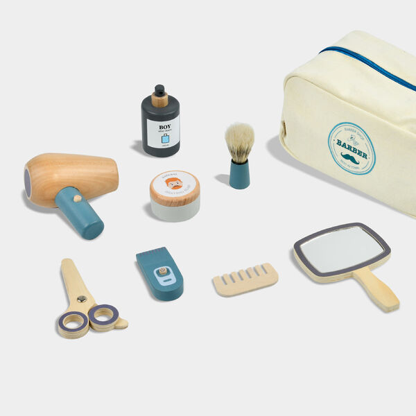 Découvrez le coffret de rasage vintage… comme papa. Ce kit de soin comprend 11 accessoires : un miroir inspiré des temps anciens, un peigne, une paire de ciseaux, une lame de rasoir manuelle vintage, un rasoir electrique, une lotion après-rasage, une crème hydratante, du shampoing, un sèche cheveux, un blaireau et un mug.